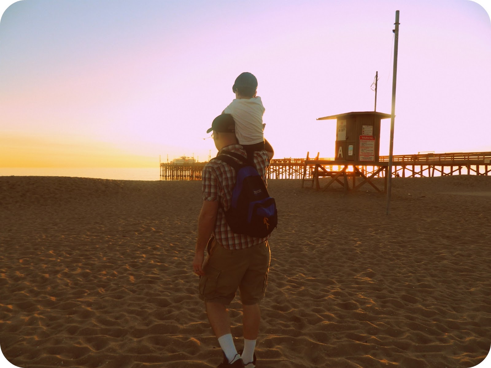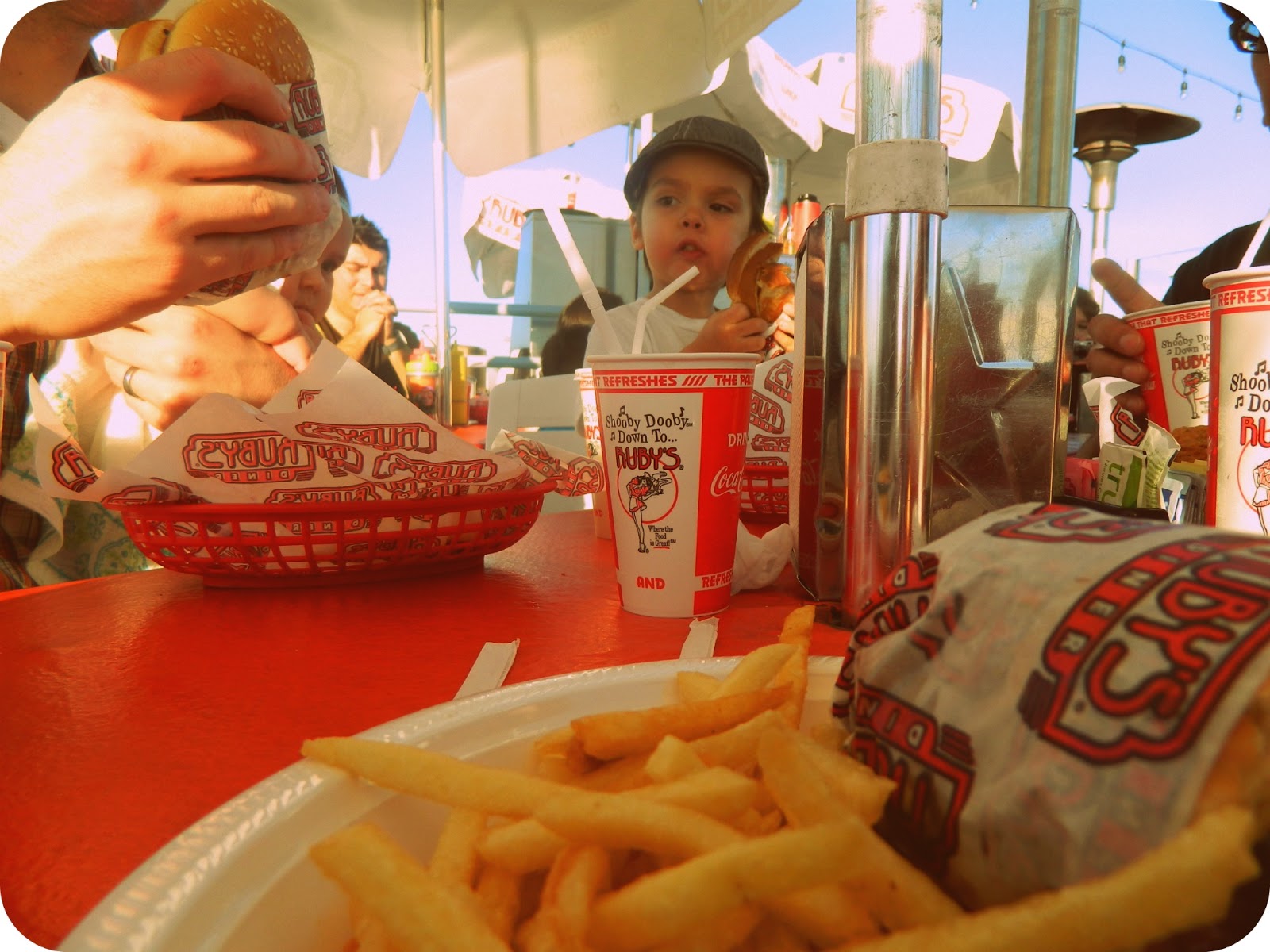 For months now we have been planning a vacation to sunny So. Cal to take the kids to Disneyland. Last week all the planning finally paid off. It was a group effort, all together there were 4 kids and 6 adults, my family, my sister and her family and my mom and dad. This was our first real family vacation together in a long time and it was not without it's own set of difficulties, food poisoning being the worst! However, I will not talk about that, at least not today! Today I will remember that first day, the day we went on an airplane, got our feet dirty in the sand and enjoyed a delicious juicy hamburger!