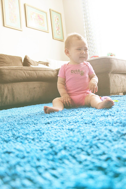 Perhaps because it looked like we skinned a beloved Cookie Monster. I'm sure she was just worried about him getting cold, once I explained to her it was just a new rug she warmed up to it too...