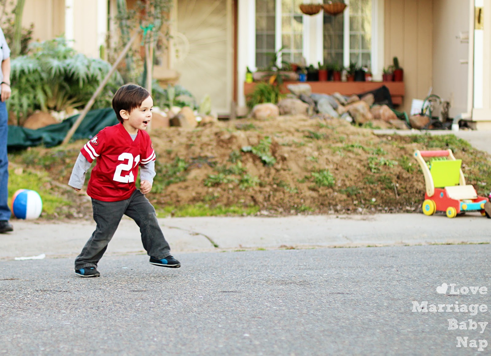 The weekend came with beautiful weather. We tried to soak in as much of it as we could. Steve decided it was perfect weather to work on the trailer, suddenly one by one we followed outside. The boys played in the unfinished trailer. The next thing we knew we were teaching them how to play kickball...isn't that how it happens?
