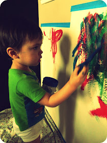 I have locked us up in this house for the last two days and we are determined to get this kid potty trained! So far he is doing really well, I'm actually pleasantly surprised. I'm not sure why it terrified me so much. I'm sure he's sick of me following him around and asking every 5 minutes if he needs to go. I've tried to make it as fun and easy for him. Today we had a little arts and crafts...