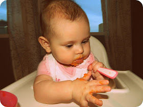 Next, you've started eating solids, carrots, sweet potatoes and rice cereal. I never felt more connected to you then when I see you eat. The way you demand the spoon and pretty much try to feed yourself, mommy is a "let me do it" type of girl too!