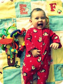 Second, your brother cannot get enough of you! He cries for you when you're not around. He is always kissing you and wanting to help you sit up and get your toys. He would easily give you his favorite choo choo train if it would make you happy. He tells me "She's happy to see me," and he's right, because you always have a smile for your big brother!