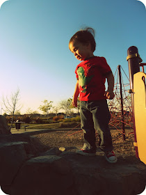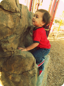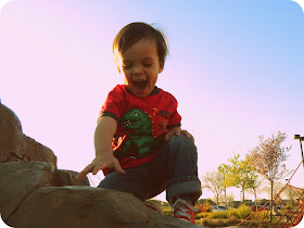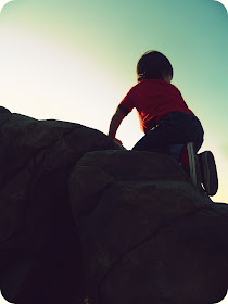 Sometimes it's hard to love where you're at when you are standing in front of a challenge. How many times have I looked at a challenge head on and said to myself "I do not want to be here!" How wonderful that my son can inspire me to take a challenge head on. You know, he did fall at one point and a few tears were shed, but when mommy wanted to hold him and take him home, he just wanted to get back on that rock and climb to the top!