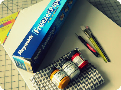 I used an 'old school' method of Freezer Paper stenciling. Using a craft knife, I cut out the image I wanted on Freezer Paper creating a stencil...
