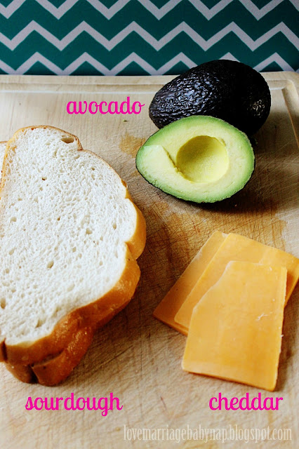 Next is the old friend, it's really just a Grilled cheese (cheddar and my preference sourdough bread) with a little work done...AVOCADOS! mmmm....avocados...