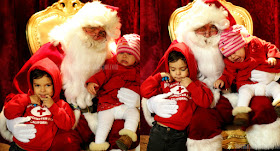 my little baby, who no longer feels hugs are required for Santa, just hand shakes and deals that he will be a good boy in exchange for a ninja turtle and a bad guy....