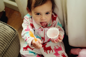 The other day during breakfast, while I wasn't looking she snuck away and found a nice little hiding spot to enjoy her yogurt and make whatever mess she could, in secret.
